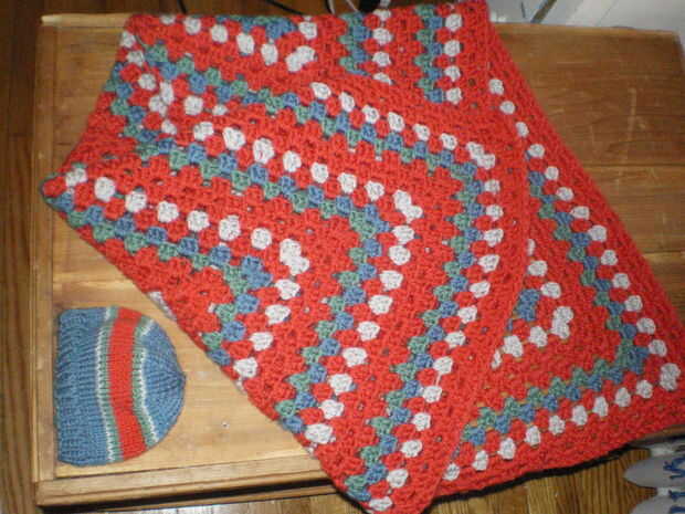 me encantó así que cuando mi hijo y su esposa estaban esperando mi primer nieto, que salió de mis agujas de tejer y les hizo esta manta de bebé encantador con libra de la marca del león del amor. http://cache.lionbrand.com//Yarns/Pound.htmEl patrón v