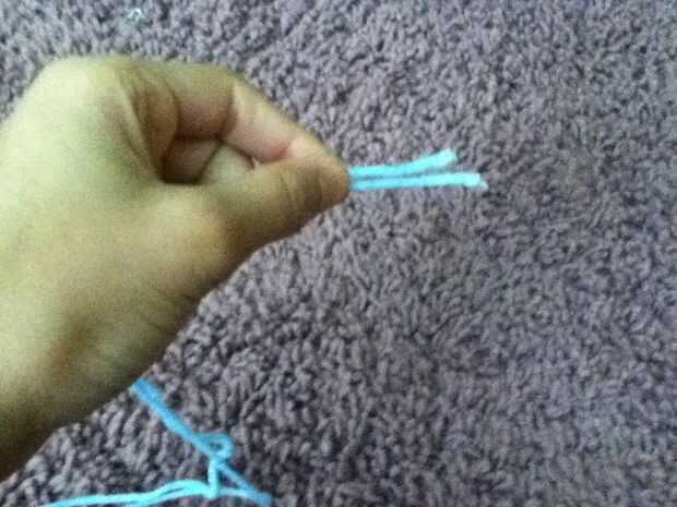 Luego necesitas a un lado para iniciar en su telar, aunque realmente no importa que. Ahora toma tu hilo. Si el hilo es grueso se podría utilizar 1 hebra de hilo. Si no, encontrar el punto donde llegará tu hilo de. Debe haber 2. Ya uno en un extremo de su hilo y otro hacia afuera.