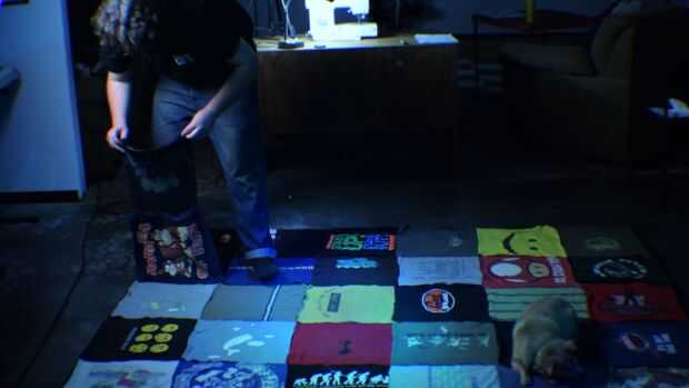 No necesariamente necesitas ir la manta entera, solo hice esto para la fila superior (5 camisas para mí)