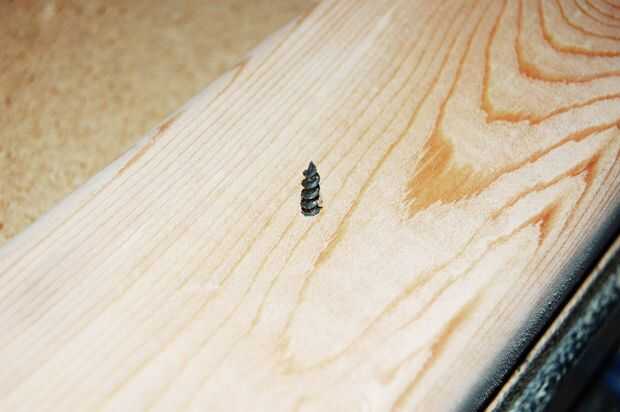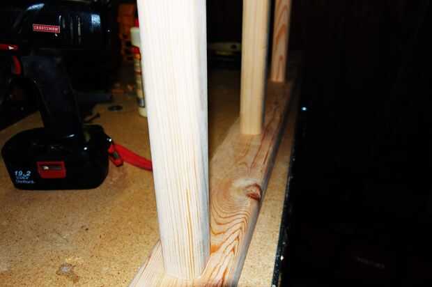 Inserte sus tornillos en el pretaladrado contador aburrido agujeros. Aplique pegamento en los travesaños de 6. Atornillar y dejar secar.