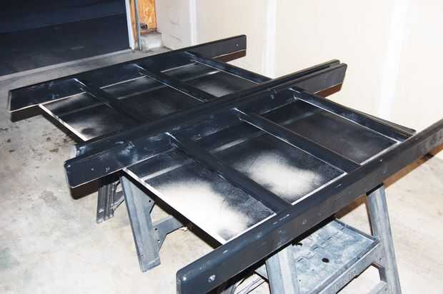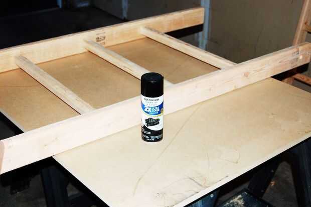 Aplicar el color deseado de pintura o laca. Desde los tornillos y arandelas necesarias para pintar utilicé un pedazo corto de paracord tenía colocación alrededor y colgado los y el travesaño superior para ser pintado.
