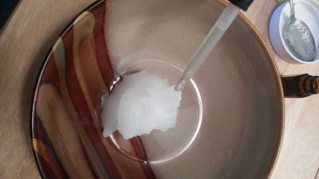 Luego añada aproximadamente 10 gota de aceite esencial aceite de coco.