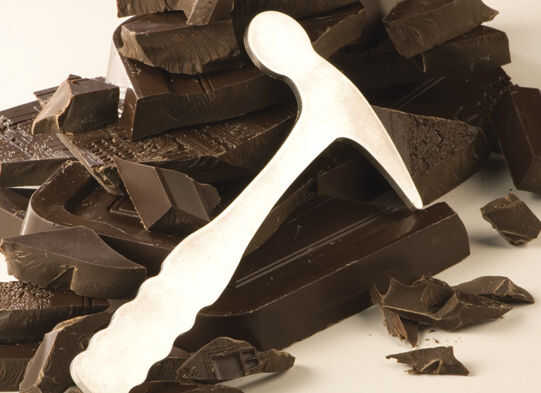 Ahora es el momento de irrumpir en la mordedura [o dos] tamaño de piezas. Usar guantes de látex para este paso porque encontre que estaba dejando huellas en el chocolate sin ellos; la multa si vas a lo de la bufanda todo a ti mismo, no tan fino para regalar.
