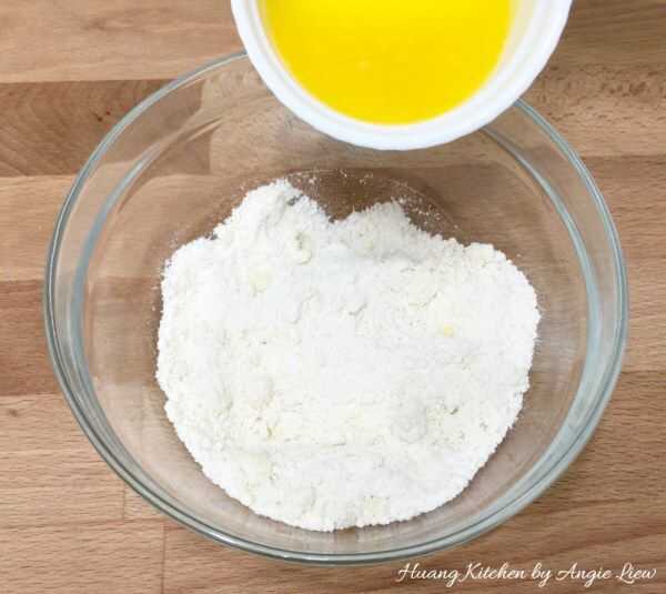 Deje enfriar el mantequilla derretida a temperatura ambiente antes de agregar a la mezcla de harina.