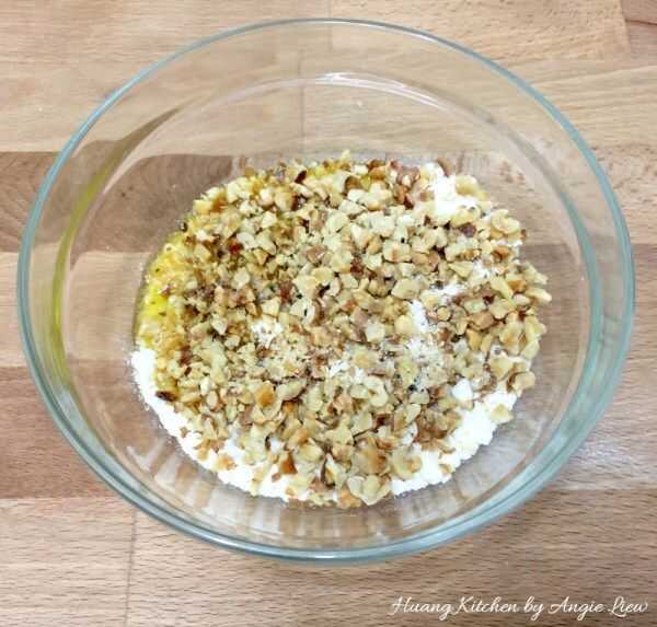 Las nueces picadas y tostadas añadir una crisis adicional a la parte superior del muffin.
