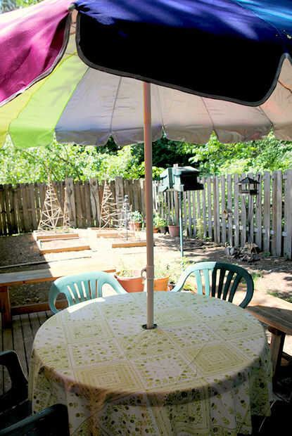 Mantel del bricolaje con un agujero para el paraguas del Patio