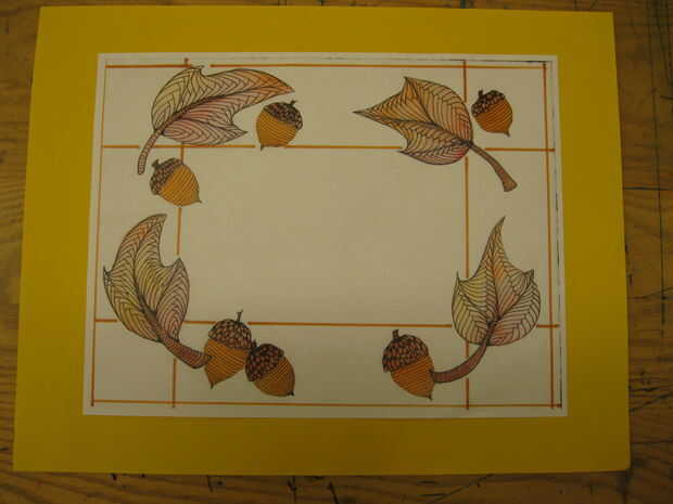 Montar tu xerox color en un papel de color un poco más grande. Me gusta laminar los manteles individuales, duran más, tus invitados pueden llevarlos a casa.