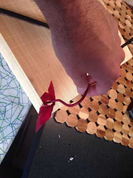 Corte una sección de mantel para colgar y un gancho a través del hilo de rosca.