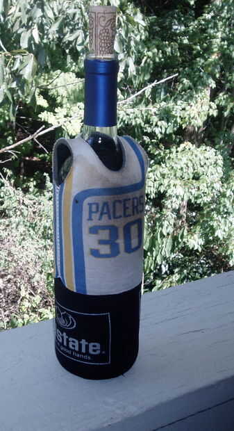 el básico puede coozie se extiende sobre la parte inferior de la botella de vino mientras que el jersey coozie consigue tirado en la parte superior. el resultado es una bien aislada botella de vino blanco frío. el neopreno debe volver a su forma original si no la izquierda durante horas y horas.