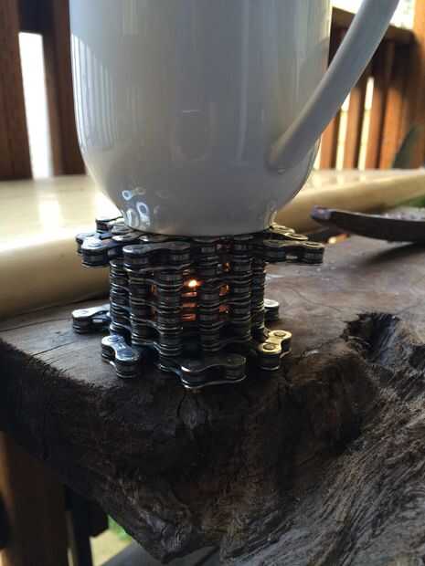 Dependiendo de la parte inferior de la taza, usted puede preferir tener el pie con las piernas largas hacia arriba o hacia abajo. Para tazas pequeñas, puede doblar las piernas muchas hacia adentro, como en la imagen, rellenando el agujero encima de la vela. Para macetas o tazas grandes, usted puede estirar las piernas grandes.
