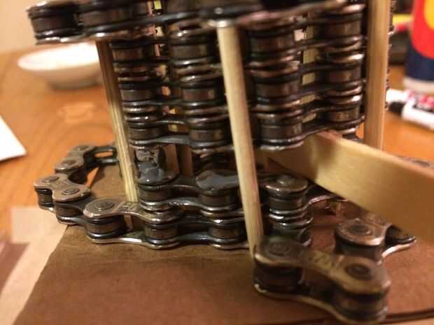 a partir de la parte inferior, separados cada capa una por una y aplicar el pegamento en cada enlace que se encuentra entre pinchos de bambú. Usa el palito para mantenerlos separados mientras aplicas el pegamento. Trate de hacer esto de una vez antes el adhesivo se seque. Si, sin embargo, el pegamento comienza a conseguir demasiado pegajosa, dejarla para al menos 12 horas y luego mezcle hasta poco más de pegamento y seguir adelante.