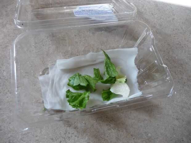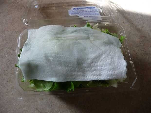 - Ventilación obras de contenedores de plástico baya muy bien para cantidades más pequeñas de ensalada verde. Simplemente forre el fondo del recipiente con una toalla de papel ligeramente humedecido, poner las verduras frescas en y línea de la parte superior con otra toalla de papel humedecido. Cierre la tapa abajo y refrigere. (Sólo mantener un ojo en la toalla de papel para asegurarse de que no se seque. Humedecer según sea necesario). Esta es la manera perfecta de tomar Ensalada hecha de antemano en su próximo viaje de camping, también.