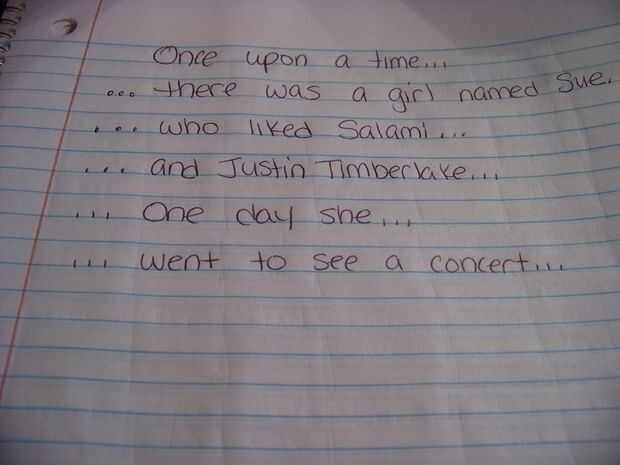 Conforman una línea de una historia a la vez. Que una persona elija dos o más personas, cada vez que señalan a una persona, tienen que continuar con la historia!