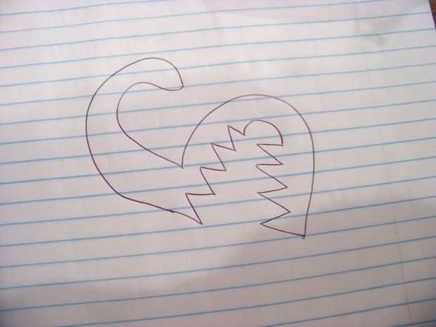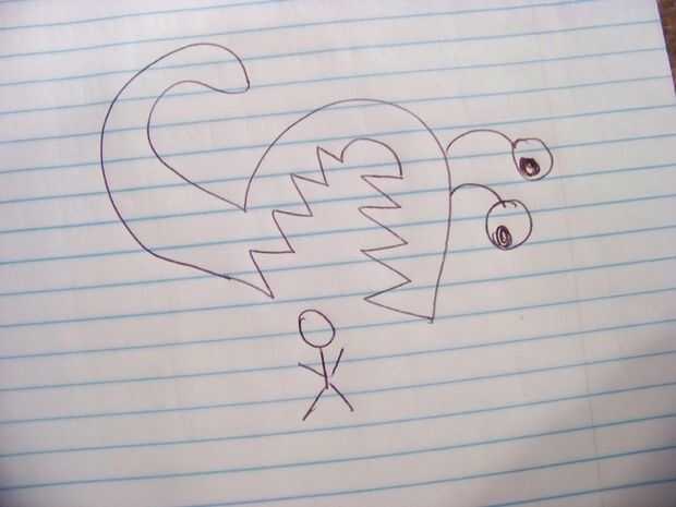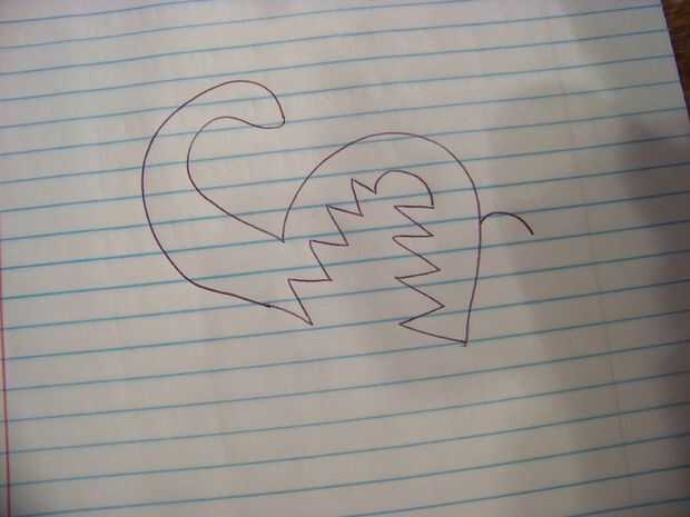 Primera persona, dibujar una línea, una línea sólida, luego pase el papel. Segunda persona y dibujar una línea, luego pase el papel. Continúe hasta que la imagen se hace! Aquí, hemos hecho un monstruo! Grrrrr! Parece feroz!