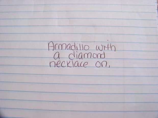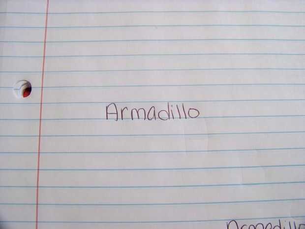 Entra ahora, la primera persona en algo que comienza con la letra "A" como un Armadillo.