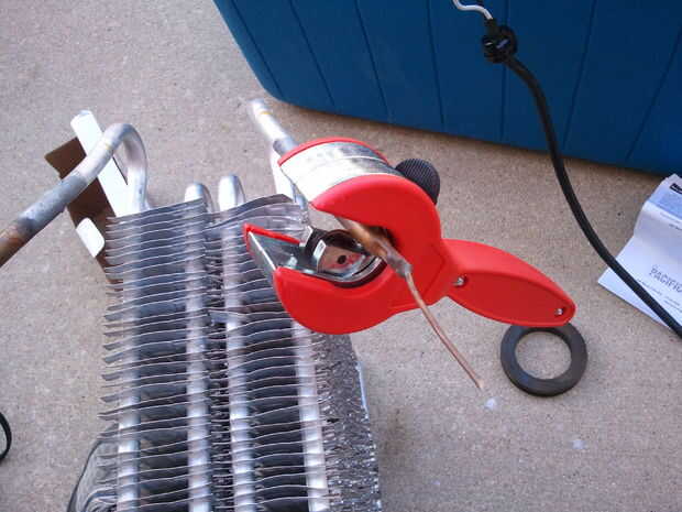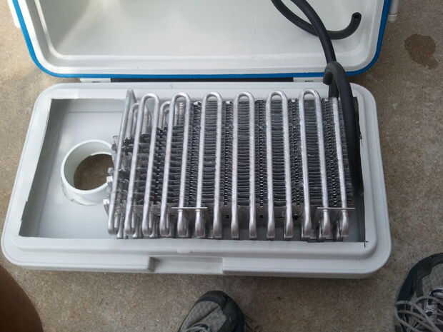Yo había atrapado algunos manguera PCV de 11/32, de la misma tienda de piezas que se cerraba y enganchado a los extremos recortados de mis aletas. Uno para la captación y uno de hacia fuera. No quería estar distraído todo el día con el sonido del agua goteando, otra manguera debe permitir la salida de flujo en la línea de agua.