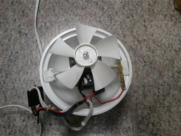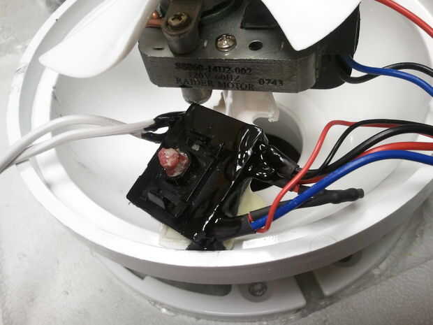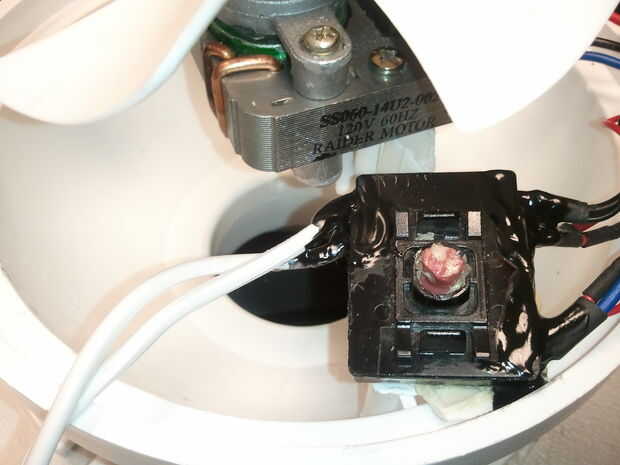 Entonces yo había montado el ventilador, y gorila pegada la perilla de control hacia el otro lado. Me sacó de mi cinta aislante líquida y di todos los conectores una buena capa alrededor de los bordes, porque es cómo ruedo.
