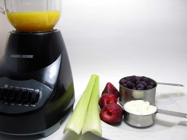 Pulse varias veces para dejar que los materiales se distribuya, mezcla en la posición alta y batido; o seguir las instrucciones de su licuadora para hacer batidos.