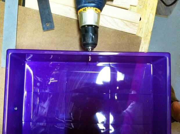 También tendrá que taladrar los agujeros en los extremos de los trozos de madera. Esto es crítico. Si no taladre un agujero de ancho suficiente, probablemente dividirá el woodl. Taladré todos mis agujeros (estantes y madera).125 pulgadas (que es 1/8 de pulgada). Elegí ese tamaño ya es el tamaño de los remaches que utiliza.