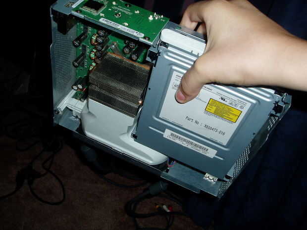 Pop el disco dejarlo cargar y como el disco está girando, recoger sus consola y empezar a girar y moverse por. Si hiciste este derecho usted debe escuchar un ruido que es mucho más tranquilo entonces qué es el sonido normal de tu DVD se come a la muerte. Este ruido es la parte superior del disco golpear las teclas. Sin estas pastillas el disco normalmente se inclina y se llega a la bandeja de DVD y arañazos la superficie inferior de los datos del disco. Los botones detener esto y acaba de hacer el disco echar atrás en su posición sin nunca conseguir rasguñado.