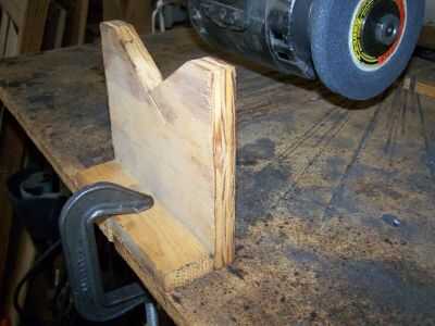 Una simple guía vertical de desechos funciona muy bien. La pieza fijada a la mesa simplemente se pega sobre la pieza vertical con la "V" cortar.