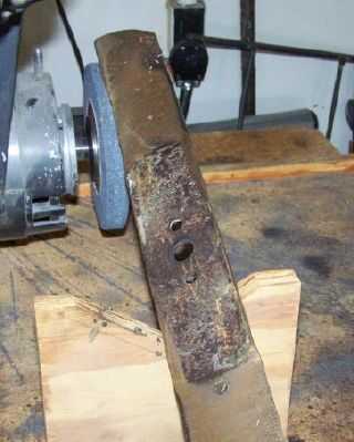 Si usted sospecha que su hoja está fuera de equilibrio porque alguien más en un lado que el otro a tierra, puede comprar una pequeña herramienta de cono que se fija en la punta de un eje para ver cómo balancea. Aunque tengo uno de esos, no he encontrado completamente útil. Me gustaría poner un perno pequeño a través del orificio de montaje y deslizamiento de la cuchilla un collar en el perno para que el perno quede cerca del agujero. Asegurar los tornillos con arandelas y una tuerca. Entonces chuck el perno en un taladro de velocidad variable. Si la hoja está fuera de balance, debe girar como el taladro hace girar la cuchilla. No es necesario hacer girar muy rápido. Traer la hoja que gira cerca de una placa antigua con pintura en ella así que al final de la hoja comienza a pulgar el tablero un poco. Parar el taladro y ver qué extremo de la hoja tiene pintura en él. Moler un poco de acero desde el extremo de la hoja y repita la prueba de taladro hasta que ambos extremos tienen aproximadamente la misma cantidad de pintura sobre ellos.