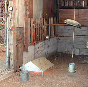 Determinar donde se puede obtener energía de (mi coop tiene una toma de corriente en él para lámparas de calor en el invierno) pero quizás tenga que ejecutar un cable de extensión desde algún lugar. Si lo hace, asegúrese de que es un cordón de exteriores y el enchufe se termina dentro de la cooperativa bajo techo y fuera de tiempo;