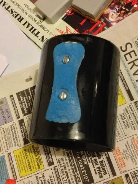 Idealmente se invierta una lata y meter algunos agujeros (para que el aire hacia fuera una vez sumergido) y una arandela de goma y un tornillo para conectar la lata y los alimentos del tazón de fuente para que el bolo alimenticio se suspende en el ce