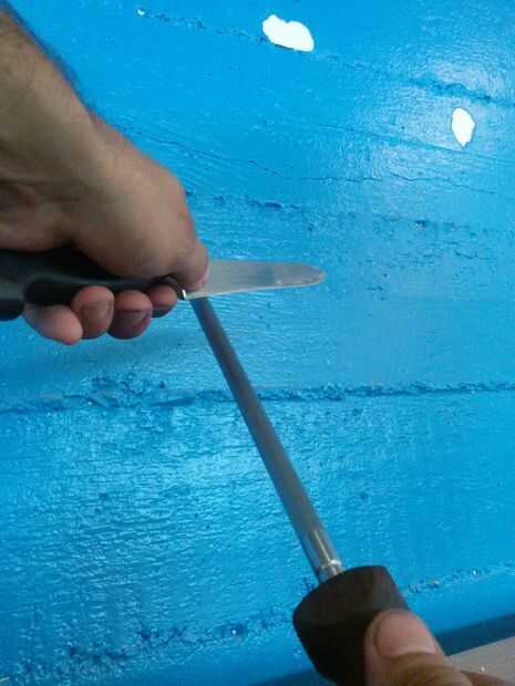 Nota: no recomiendo usar un acero en cuchillos dentados, especialmente los cuchillos baratos con dientes muy pequeños (los cuchillos de' milagro' que están en los infomerciales).