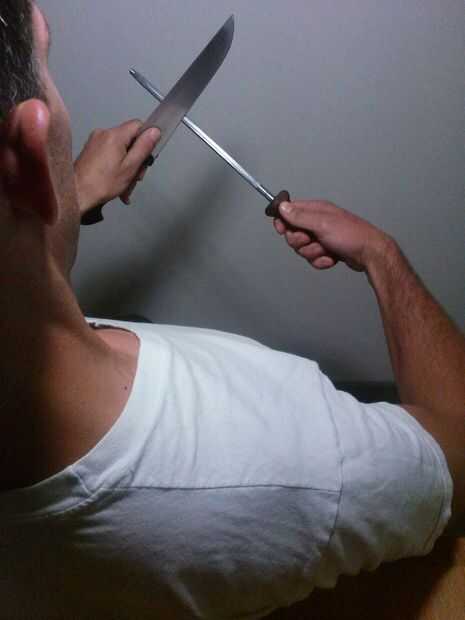 También - izquierda estoy entregado. Mantenga el cuchillo en su mano dominante y el acero en el otro.