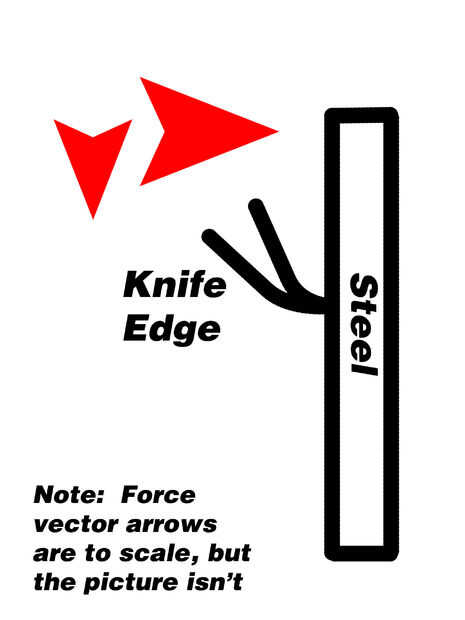 1) no hay mucha fuerza aquí!!!! La cantidad de fuerza que estamos aplicando para el cuchillo hacia el acero es aproximadamente la de recoger una taza normal completa de café o menos - que no es mucho!! Si tratas a los músculos el cuchillo contra el acero, podría dañar su cuchillo, el acero, o lo peor de todo cortarse.