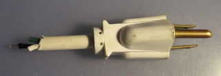 Corte el extremo del enchufe de un cable de línea. Corte el cable de tierra verde y el blanco neutro un poco más corto que el negro (120V caliente). Sólo el extremo negro de la tira y la lata el final con soldadura. Algunos cables de línea tienen un cable marrón, azul y verde/amarillo. El cable marrón es el cable "vivo".