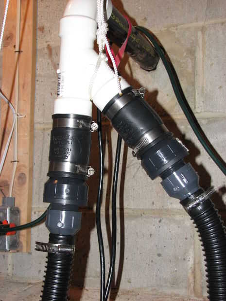El trabajo de plomería PVC un poco era necesario, de modo que dos bombas pueden bombear agua hacia fuera al mismo tiempo. He instalado las válvulas de retención en los dos extremos. Válvulas de retención parar el agua, volviendo a la bomba debido a la gravedad. Aquí tengo algunos buenos consejos de los expertos en Instructables sobre tubos de PVC. Tubos de PVC sólidos deben acoplarse con cemento de PVC. Cemento de PVC es un pegamento tóxico maloliente como compuesto. Tienen que para poner una capa generosa en los dos extremos que están a punto de unirse. El compuesto se seca rápido, así que no esperes demasiado. Tuve que utilizar un adaptador de combinación con las válvulas de retención, el escenario puede ser diferente dependiendo del tamaño de la tubería de PVC utilizado para sacar el agua. No te olvides de utilizar un anillo de acoplamiento para acoplar el tubo flexible de PVC para la válvula de retención. También puse una fina capa de masilla para un sello apretado del agua en las juntas de sellado donde se utilizó el anillo de acoplamiento.