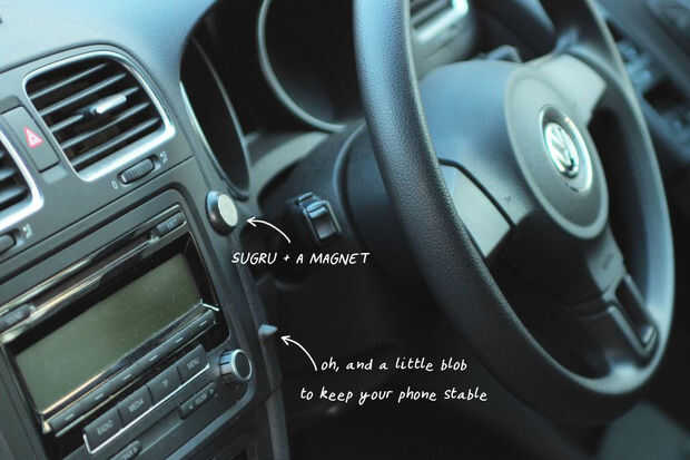 Utilizando el método del paso 1, construir un sugru pirámide en la parte posterior del imán y fijar al tablero de su coche.