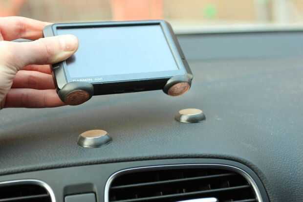 Utilice las monedas para medir y marcar donde quieres tu GPS a sentarse en su tablero de instrumentos.
