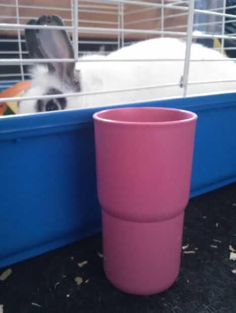 Un vaso de plástico pequeño asegurarse de que es casi tan alto como la parte inferior de la jaula de su mascota (no tiene que ser exactamente tan alta como a la vuelta de la misma altura)