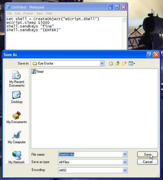 Una vez más, que debe ser exacta, capitales y todo. Cambiar el tipo de archivo a "Todos los archivos", y debería ver un icono pequeño para Timer.vbs debajo de la barra de navegación. Golpe guardar y listo a mitad de camino.