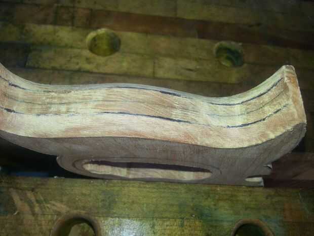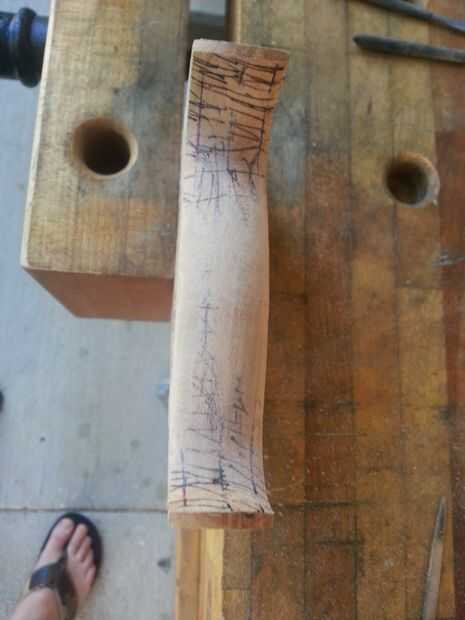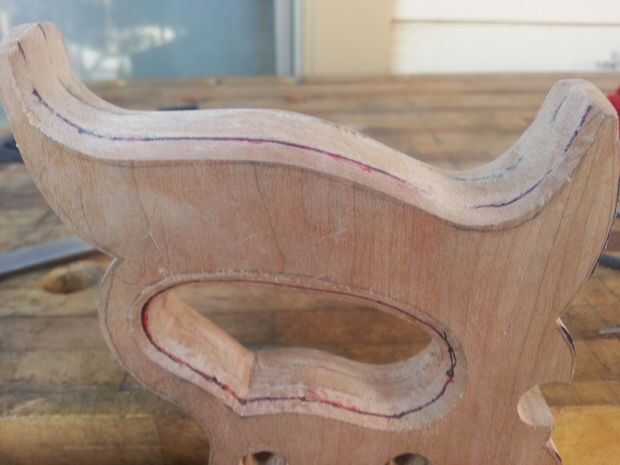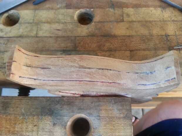 El resto de la formación es tardado pero sencillo ahora que se crea la forma básica. Usé la tela delgada turners respaldada por papel de lija y a la vuelta de la parte posterior. Para ayudarme a saber cuando fue hecho, garabateado líneas de lápiz en el dorso por lo pude ver donde estaban los puntos bajos. (Imagen 4)