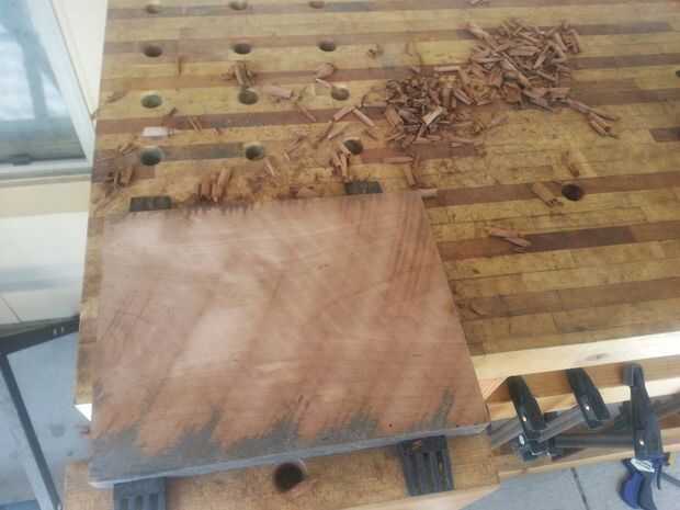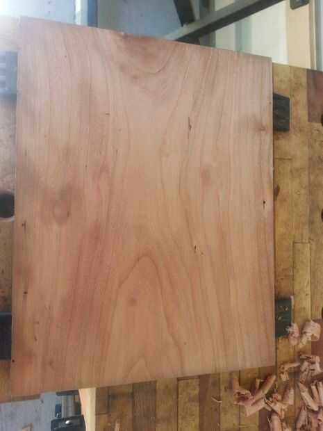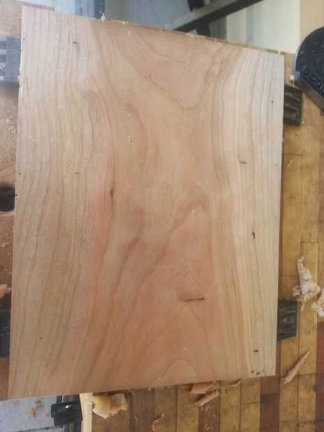 Tuve algunos agradable cereza aserrada áspera la sería hermoso para un mango de la sierra. Encontré una tabla que era lo suficientemente gruesa y mi avión de matorral el material para ver lo que parecía por debajo de la gris mate fuera de capa superficial.