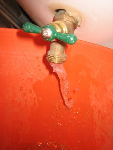 Con válvula de presión abierta Abra el agua al tanque de agua y girar en el agua de drenaje para permitir que el resto de los sedimentos para ser arrastradas. Permiten unos galones digno de agua. Asegúrese de comprobar el agua que drena hacia fuera y asegúrese de que está claro. Si es se fijan para volver a llenar el tanque.