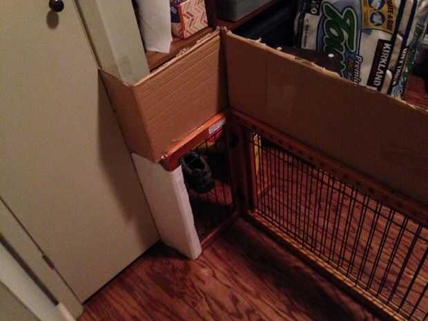 Decidí construir alrededor de la puerta existente. Es estable, es bastante robusto, y lo único que realmente necesitaba era una tapa más alta y un pasaje. He acortado para abrir un pasaje y luego llena el vacío resultante con cartulina. La parte superior estaba demasiado baja, pero el diseño de dos piezas facilita un pedazo de cartón en el medio para actuar como un parapeto del emparedado. Trabajar con lo que tenemos aquí y no olvide atar firmemente a las paredes. Pensar como un perro. Si resistente de la pared, pero no está atado a la pared, que va a conseguir empujado fuera del camino.