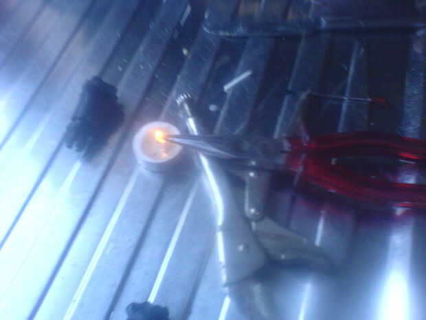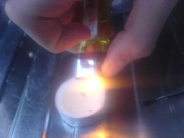 tenía que encontrar una manera de sustituir para el quebrado alas en el regulador así lo que tienes que hacer es luz de una vela, tomar una aguja del paquete y el calor extremo de la aguja mientras se sujeta con seguridad en el extremo de los alicates, cuando se pone rojo caliente puñalada la aguja a través de la ranura y se derrite en el lugar donde estaban las alas de la botella una vez.