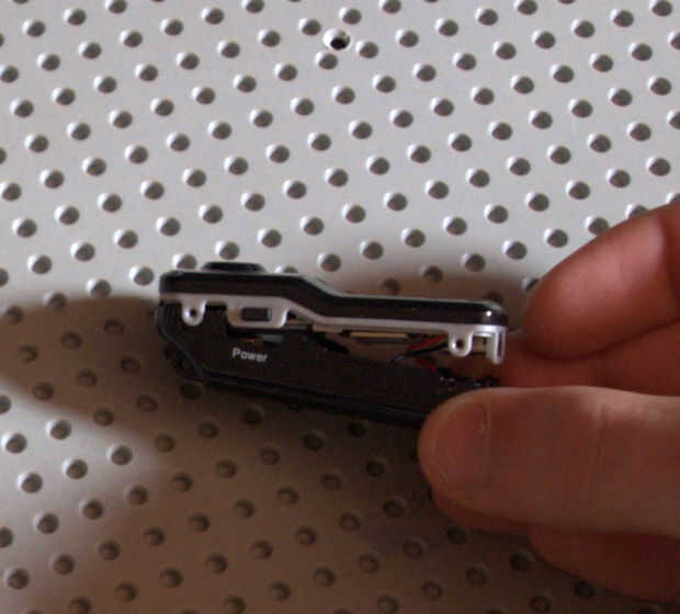 Con mucho cuidado, quitar los tornillos y ponerlos en un lugar seguro. Use una tapa de botella para almacenarlos. Trate de no rayar la carcasa de su cámara porque quieres que parezca en el exterior nunca ha sido tocada. Una vez que todos los tornillos son, con mucho cuidado intentar parte las tripas en el dispositivo. Cuidado con los cables que van hasta el micrófono y la batería. Si éstos salen, tendrán dificultades para solucionarlos. Completamente quitar la placa de circuito y la batería de su dispositivo y colocarlos a un lado.