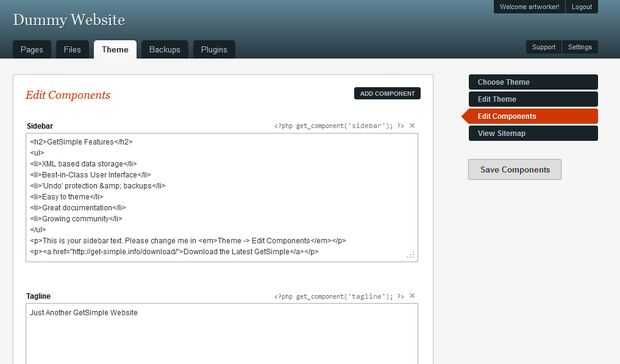 También puede cambiar la barra lateral y la línea de la etiqueta del sitio editando en tema > Editar componentes