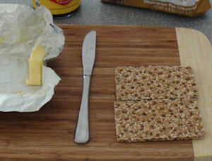 Ahora puede extender la mantequilla en una capa gruesa agradable por los crackers.