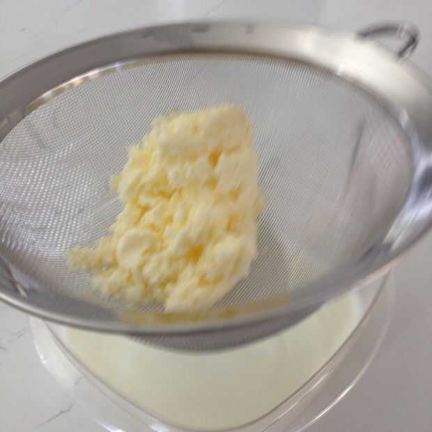 La materia sólida es la mantequilla y el líquido es el suero de leche