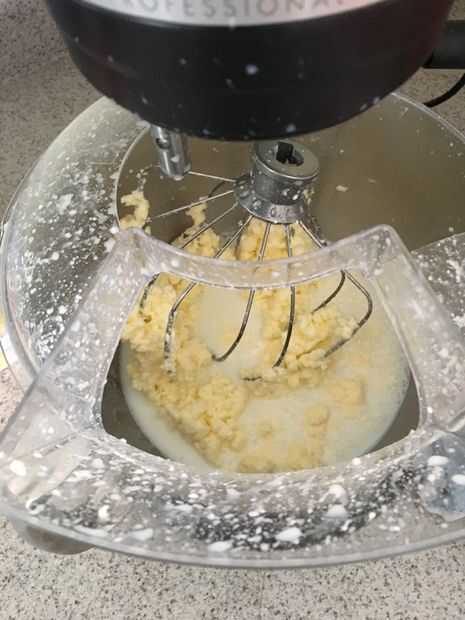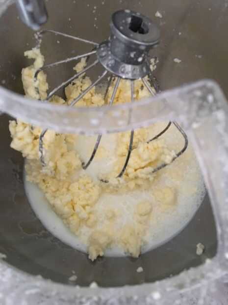 Observe cómo la mantequilla y la leche de la mantequilla aparte, esto es cuando sabes que terminaste mezcla.