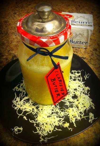 Mantequilla clarificada se hace derritiendo mantequilla y permitiendo que los componentes de la leche para separar y por lo tanto el nombre.
