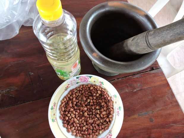 Vivo en Tailandia, donde mi cocina consiste en una olla de arroz y dos morteros y Maja. Puedo conseguir mantequilla de maní en un supermercado, pero es más barato, saludable y sabrosa para hacerlo yo mismo. Aquí es cómo lo hago en mi cocina mínima.