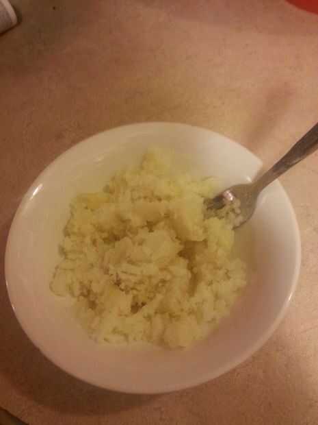 Rápida cocer la patata en el microondas. Frote su patata y con la horquilla de meter un montón de agujeros y caer en un recipiente de microondas seguro. Mina cocinar durante 5 minutos en el microondas de convección. Utilizando una olla titular o cocina toalla Retire la patata y smash contenido en el recipiente mientras se retira la piel. La piel de patatas llegará justo al lado si lo ha hecho de la hornada. Utilice la horquilla para hacer puré de la patata.